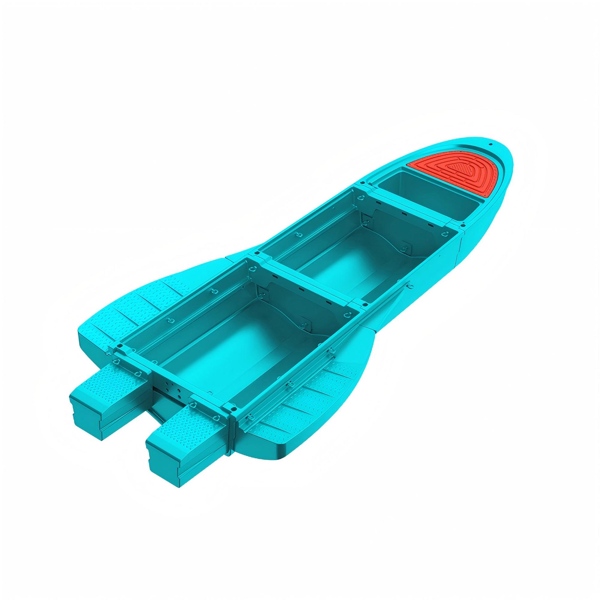 The sectional modular hull design makes transport and storage more practical than a traditional one-piece boat. It can be loaded into an SUV rear area or pickup bed, making it a strong option for users who want easier access to fishing and outdoor water locations.