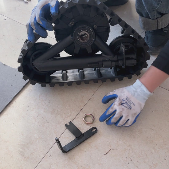 The rear rubber track modules and front ski assemblies are designed specifically to match the chassis, axle and mounting points of the Zyliathor 212cc, 48V 1500W and 48V 2000W go karts.