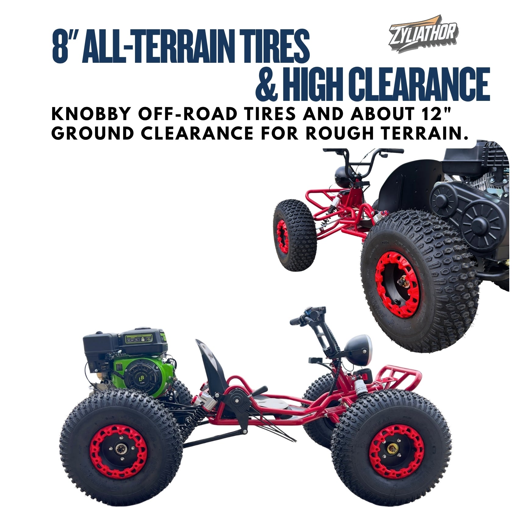 Zyliathor 212cc Upgrade Off-Road Go Kart with CVT, Electric & Pull Start, Forward/Reverse, 8" All-Terrain Tires